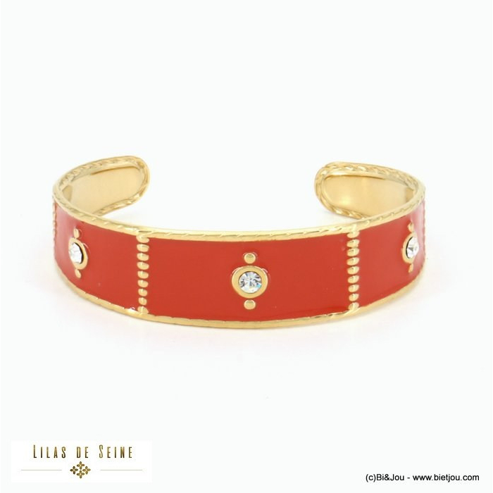 Bi&Jou, créateur et grossiste bijoux acier à Paris dans la rue du temple, vous propose ce bracelet jonc ouvert en acier inoxydable et résine époxy coloré de style vintage sertis de strass pour femme 0222530. Ce bracelet jonc en acier est ouvert et légèrement réglable. Les dimensions de ce bracelet jonc sont de 17x65mm. Bi&Jou, fournisseur français pour les professionnels de la mode et de la beauté, vous annonce que ce bracelet fantaisie ne contient pas de nickel, plomb ni cadmium et est anti-allergique (conformément aux lois françaises et européennes).