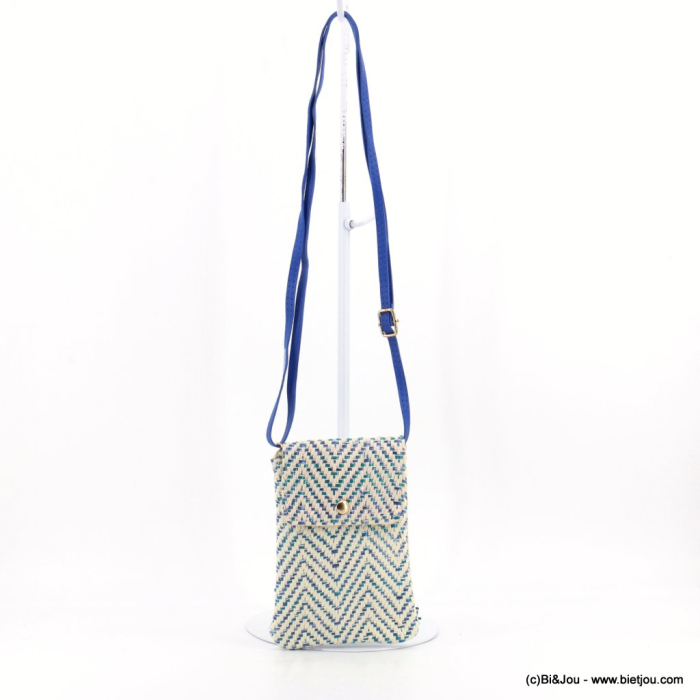 Bi&Jou, grossiste sacs à main et maroquinerie à Paris dans la rue du temple, vous propose cette pochette souple pour smartphone en fils tressé de coton et de polyester métallisé avec une bandoulière en synthétique 0923036. Cette pochette pour smartphone se ferme grâce à sa fermeture du bouton aimanté. Cette pochette peut être portée au tour du cou, à l'épaule ou croisé grâce à sa bandoulière ensynthétique réglable. Bi&Jou, fournisseur français pour les professionnels de la mode et de la beauté, vous indique que les dimensions sont de 11.5x18x1cm.