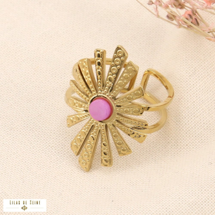 Bi&Jou, créateur et grossiste bijoux acier à Paris dans la rue du temple, vous propose cette bague ouverte bouclier soleil rayonnant en acier inoxydable et cabochon en pierre naturelle (ou nacre version blanche) pour femme 0423061. Cette bague en acier est ouverte et légèrement réglable par simple pression. Les dimensions de cette bague bohème-chic est 20x30mm. Votre grossiste vous informe que ce bijou fantaisie est composé de pierre et de nacre véritable (version blanche) : La forme, couleur et taille peuvent varier. BietJou Paris, fournisseur français pour les professionnels de la mode et de la beauté, vous informe que cette bague fantaisie bohème-chic soleil abstrait ne contient pas de nickel, plomb ni cadmium et est anti-allergique (conformément aux lois françaises et européennes).