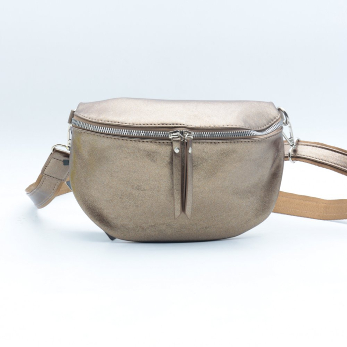 Bi&Jou, grossiste sacs à main à Paris dans la rue du temple, vous propose ce sac banane petit modèle Flora&Co en cuir synthétique souple irisé avec bandoulière ajustable à mousquetons et amovible 0923501. Ce sac banane brillant se ferme grâce à sa fermeture zip sur le devant. Il possède deux compartiments et deux poches plaquées zippées à l'intérieur et à l'extérieur. Cette banane peut être portée à la ceinture ou croisée grâce à sa bandoulière amovible et réglable. Les dimensions sont de 13x26cm. Doublure tissu polyester. Pour les femmes souhaitant un sac à main aussi tendance que pratique.