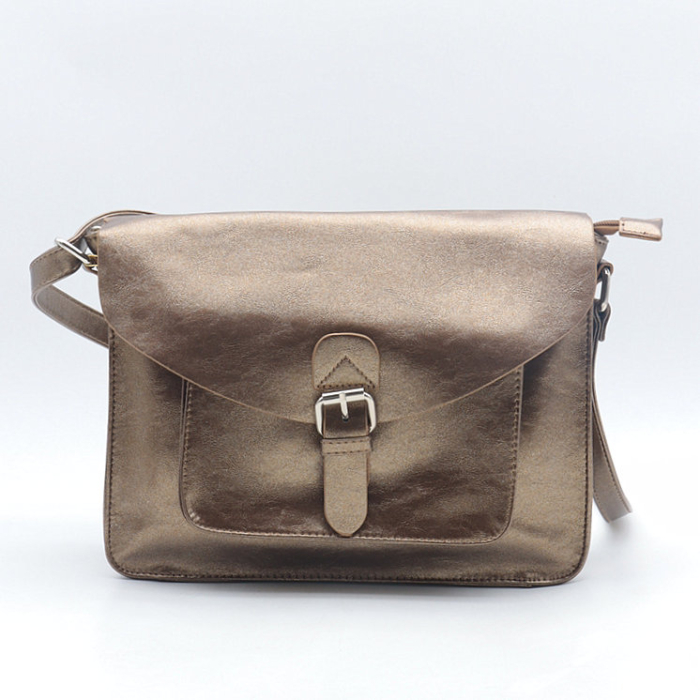 Bi&Jou, grossiste sacs à main et maroquinerie à Paris dans la rue du temple, vous propose ce sac cartable avec rabat fermoir aimanté, multi-poches et bandoulière ajustable en simili cuir brillant 0923504. Ce sac forme besace tendance de la marque Flora&Co est de style hippie-chic. Ce sac fourre-tout ultra pratique possède une poche large sur le devant et un grand compartiment avec fermoir zip. Poches plaquées zippées supplémentaires à l'intérieur et au dos. Ce sac cartable se porte en cross-body grâce à sa bandoulière fine ajustable. Les dimensions de ce sac à grosse boucle et rabat sont de 28x22x5cm. Doublure polyester. Parfait pour les femmes au look hippie-chic à la recherche d'un grand sac fourre-tout rétro.