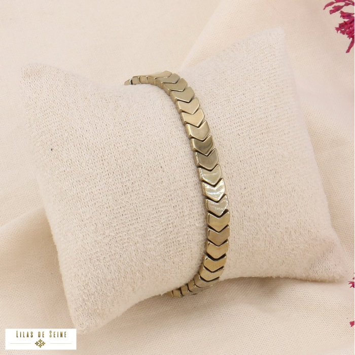 Bi&Jou, grossiste bijoux, vous propose ce bracelet élastique chaîne miroir perles en hématite pour femme 0223544. Ce bracelet élastique brillant mesure à l'origine 6cm de diamètre. La largeur de la chaîne de perles hématite est de 0,6cm. BietJou Paris, fournisseur français pour les revendeurs professionnels de la mode et de la beauté à Paris, vous informe que ce bracelet en perles hématite chevrons ne contient pas de nickel, plomb ni cadmium et est anti-allergique (conformément aux lois françaises et européennes).