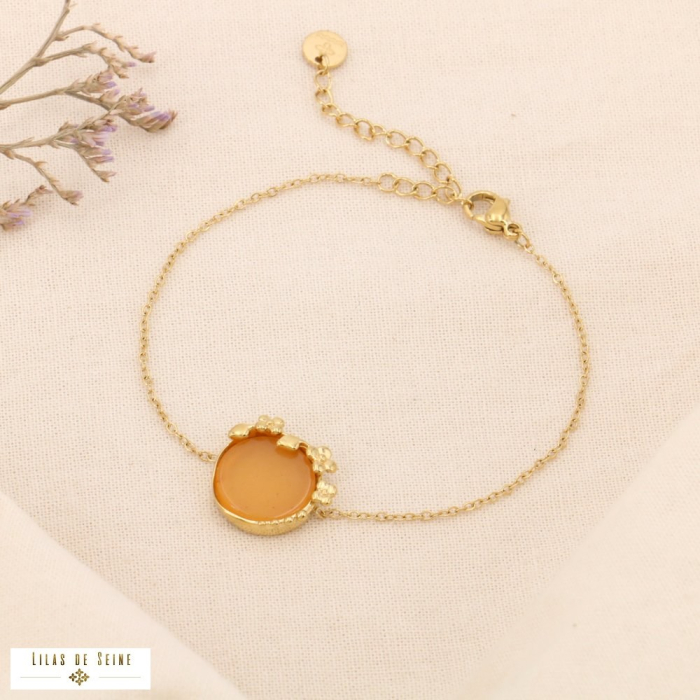Bi&Jou, votre meilleur grossiste de bijoux en acier à Paris dans la rue du temple pour les revendeurs, vous propose ce bracelet en acier inoxydable avec un pendentif rond en pierre naturelle, entouré des fleurs en acier inoxydable, ainsi qu’une fine chaîne à maille forçat pour femme 0224007. Ce bracelet fait la parure idéale avec le collier 0124141, les boucles d'oreilles 0324027 assortis pour composer un coffret cadeau. Les dimensions du pendentif oeil sont de 15x17mm environ. La longueur déployée de ce bracelet est d’environ 15cm. Elle est réglable grâce à une chaînette d'extension de 3cm environ et son fermoir mousqueton. Votre grossiste vous informe que ce bijou est composé de pierre ou nacre naturelle : La forme, couleur et taille peuvent varier. Bietjou Paris, votre fournisseur français pour les professionnels de la mode et de la beauté, vous annonce que ce bijou fantaisie ne contient pas de nickel, plomb ni cadmium et est anti-allergique (conformément aux lois françaises et européennes).