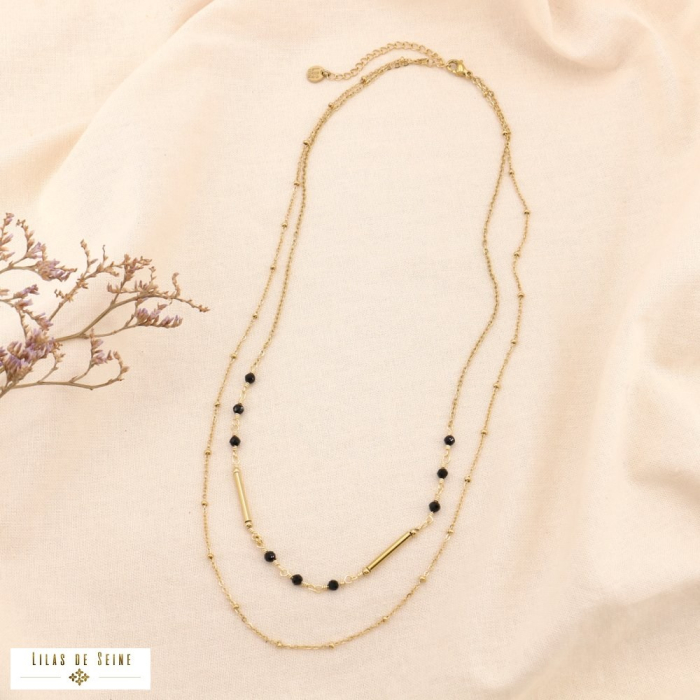 Bi&Jou, meilleur grossiste bijoux acier inoxydable , vous propose ce collier en deux rangs en acier inoxydable et en pierre pour femme 0124200. La longueur déployée de ce collier est de 40cm et 45 cm. Elle est réglable grâce à une chaînette d'extension de 5cm environ et son fermoir mousqueton. Bi&jou Paris vous informe que ce bijou fantaisie est composé de pierre naturelle : La forme, couleur et taille peuvent varier. BietJou Paris, fournisseur français pour les revendeurs professionnels de la mode et de la beauté à Paris, vous informe que ce bijou fantaisie, ne contient pas de nickel, plomb ni cadmium et est anti-allergique (conformément aux lois françaises et européennes).