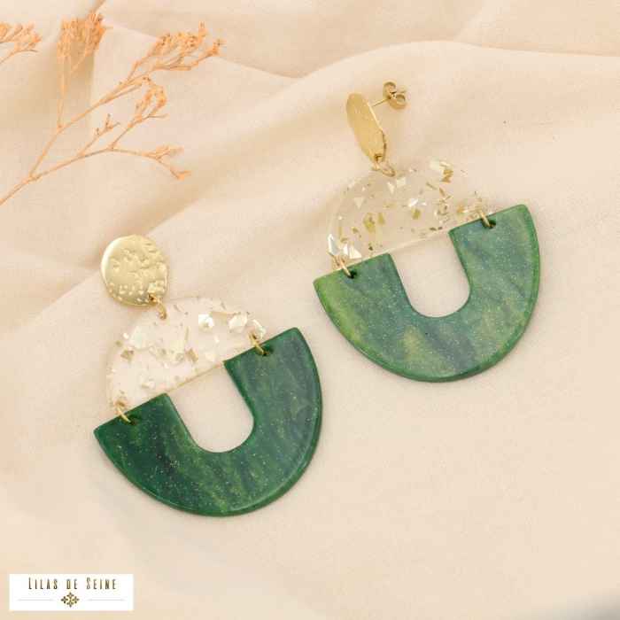 Bi&Jou, grossiste-créateur français de bijoux tendances en acier à Paris dans la rue du temple, vous propose ces boucles d'oreilles pendantes en acier inoxydable avec un pendentif en résine marbrée scintillante pour femme 0324531. Les dimensions sont d’environ L49xH71mm. Ces boucles d'oreilles se fixent à l'oreille percée par un fermoir papillon. BietJou Paris, votre fournisseur français pour les revendeurs professionnels de la mode (bijouteries, boutiques de prêt-à-porter, concept-stores, ) et de la beauté (salons de coiffure, instituts de beauté, ongleries,...), vous informe que ce bijou acier ne contient pas de nickel, plomb ni cadmium et est anti-allergique (conformément aux lois françaises et européennes).