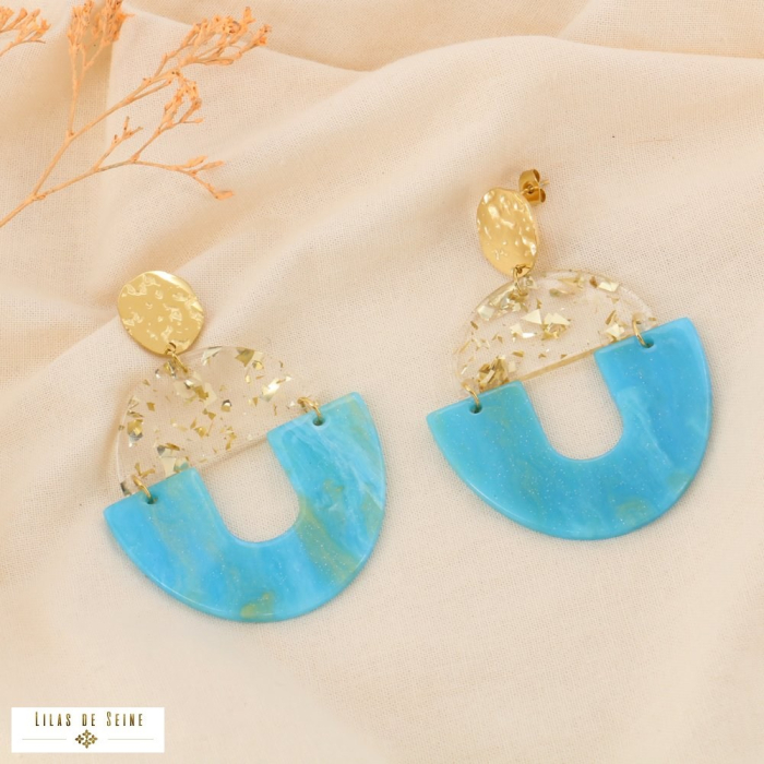 Bi&Jou, grossiste-créateur français de bijoux tendances en acier à Paris dans la rue du temple, vous propose ces boucles d'oreilles pendantes en acier inoxydable avec un pendentif en résine marbrée scintillante pour femme 0324531. Les dimensions sont d’environ L49xH71mm. Ces boucles d'oreilles se fixent à l'oreille percée par un fermoir papillon. BietJou Paris, votre fournisseur français pour les revendeurs professionnels de la mode (bijouteries, boutiques de prêt-à-porter, concept-stores, ) et de la beauté (salons de coiffure, instituts de beauté, ongleries,...), vous informe que ce bijou acier ne contient pas de nickel, plomb ni cadmium et est anti-allergique (conformément aux lois françaises et européennes).