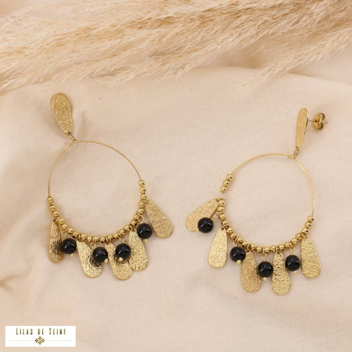 Faites rayonner votre catalogue avec ces boucles d’oreilles créoles en acier inoxydable au design raffiné, ornées de pampilles martelées et de perles en pierre naturelle ou acrylique (blanc). Elles marient un style ethnique chic à une esthétique contemporaine. Légères et élégantes, elles apportent un éclat subtil à toutes les tenues, de la plus casual à la plus sophistiquée.