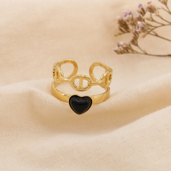 Bi&Jou, votre meilleur grossiste bijoux tendances en acier inoxydable à Paris dans la rue du temple, vous propose cette bague double-rangs avec cabochon en pierre ou nacre, forme coeur, maille marine pour femme 0425009. Cette bague en acier est ouverte et légèrement réglable par simple pression. La hauteur de la bague est de 14mm. Votre grossiste vous informe que ce bijou fantaisie est composé de pierre ou de nacre véritable : La forme, couleur et taille peuvent varier. BietJou Paris, votre fournisseur français pour les revendeurs professionnels de la mode (bijouteries, boutiques de prêt-à-porter, concept-stores, ) et de la beauté (salons de coiffure, instituts de beauté, ongleries,...), vous informe que ce bijou acier ne contient pas de nickel, plomb ni cadmium et est anti-allergique (conformément aux lois françaises et européennes).