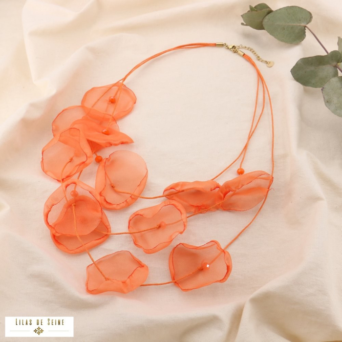 Bi&Jou, votre meilleur grossiste bijoux tendances en acier inoxydable à Paris dans la rue du temple, vous propose ce collier au style bohème et printanier, tissu liberty noué avec breloques en acier et acrylique pour femme 0125052. Ce collier élégant et délicat orné de fleurs en tissu translucide, chaque fleur est agrémentée d'un petit cristal en son centre, ajoutant une touche de raffinement. Les longueurs déployées de ce collier sont de 47à 61cm, et il est réglable grâce à une chaînette d'extension de 5cm et son fermoir mousqueton. Ce collier fait la parure idéale avec les boucles d'oreilles 0325038 assorties pour composer un coffret cadeau. BietJou Paris, votre fournisseur français pour les revendeurs professionnels de la mode (bijouteries, boutiques de prêt-à-porter, concept-stores, ) et de la beauté (salons de coiffure, instituts de beauté, ongleries,...), vous informe que ce bijou acier ne contient pas de nickel, plomb ni cadmium et est anti-allergique (conformément aux lois françaises et européennes).