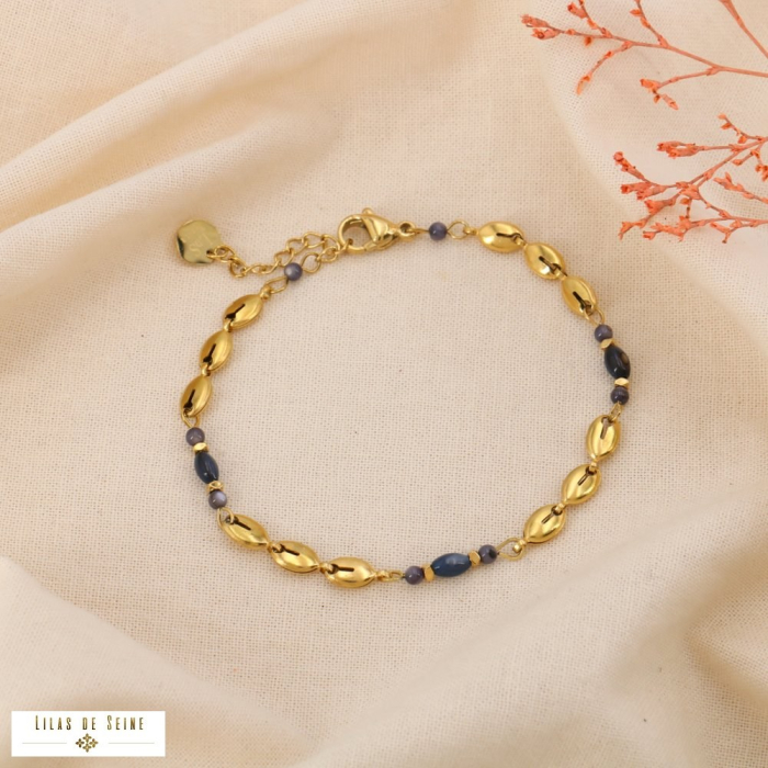 Apportez une touche de raffinement à votre collection avec ce bracelet en acier inoxydable doré, sublimé par des perles en nacre et des éléments dorés en forme de grains de café. Un bijou à la fois tendance et intemporel, parfait pour les revendeurs professionnels, les boutiques de mode, bijouteries, concept-stores, et enseignes spécialisées dans l’accessoire haut de gamme.