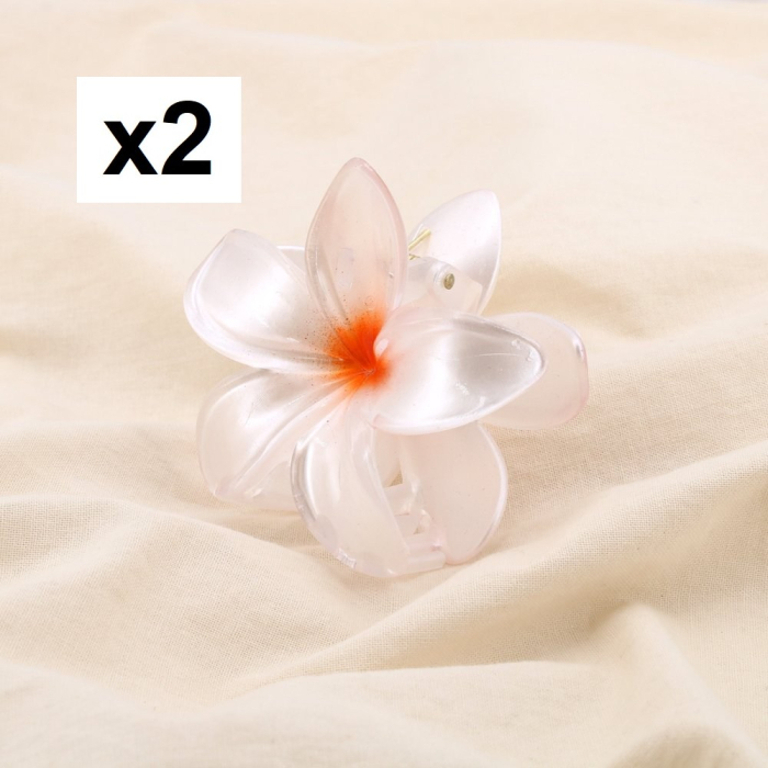 2 Pinces à cheveux fleur plumeria acrylique 0625072