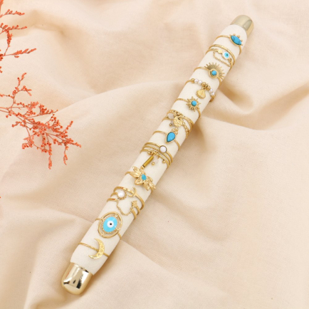 - Finitions : Émail coloré, pierres fantaisie, perles acryliques