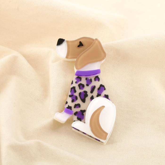 Apportez une note chic et décalée à vos collections avec cette broche à épingle en résine et métal représentant un chien élégant vêtu d’un manteau imprimé léopard / pois . Un accessoire original et tendance pour enrichir l’offre de vos boutiques de mode, magasins de vêtements et concept-stores.