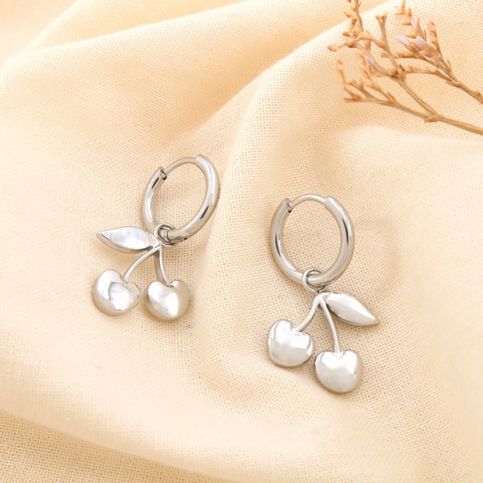 Jouez la carte du fruité chic avec ces boucles d’oreilles mini-créoles en acier inoxydable, ornées d’un pendentif en forme de cerises stylisées. Disponibles en doré ou argenté, elles apportent une touche espiègle et tendance à toutes les tenues, tout en conservant une élégance sobre et soignée.