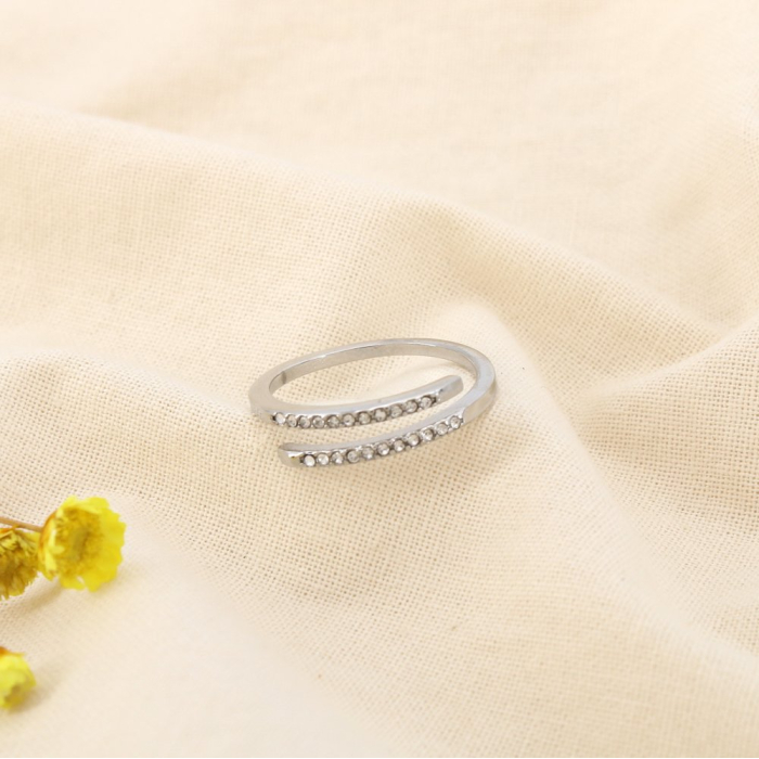 Conçue en acier inoxydable, cette bague garantit une excellente résistance à l’usure et une tenue durable dans le temps. Son système ouvert permet une adaptation simple à différentes tailles de doigts, réduisant les contraintes de gestion de stock. Le pavage discret de strass apporte de la brillance sans excès, répondant aux attentes d’une clientèle à la recherche de bijoux élégants et faciles à porter.