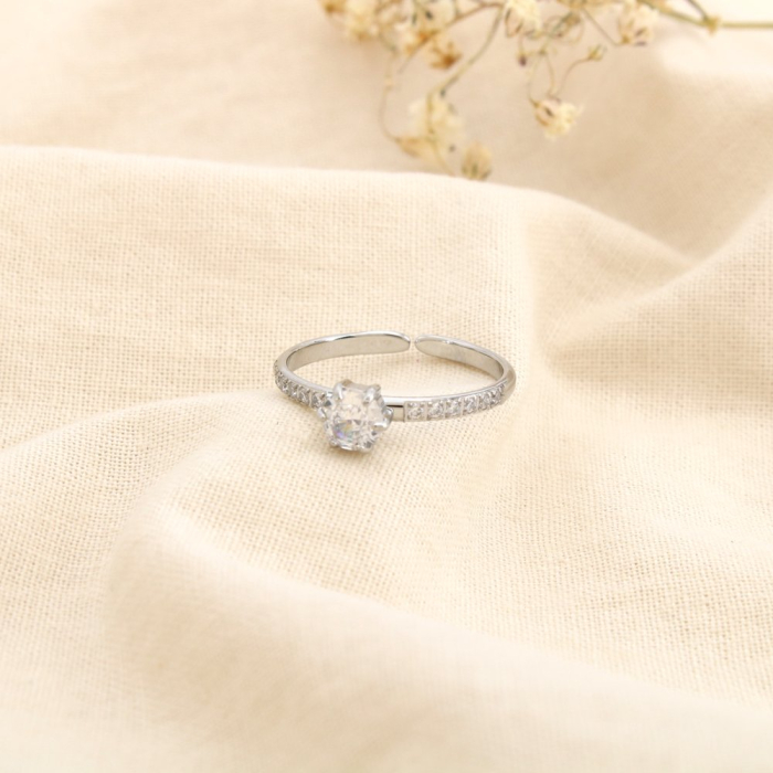 Cette bague ouverte en acier inoxydable séduit par son design raffiné et sa pierre centrale soulignée de strass délicats. Élégante et contemporaine, elle répond aux attentes des professionnels de la mode et de la beauté à la recherche de bijoux faciles à commercialiser, alliant brillance maîtrisée et lignes intemporelles.