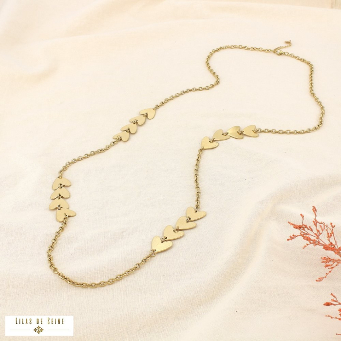 Sautoir chaîne coeurs striés acier inoxydable 0126030 doré
