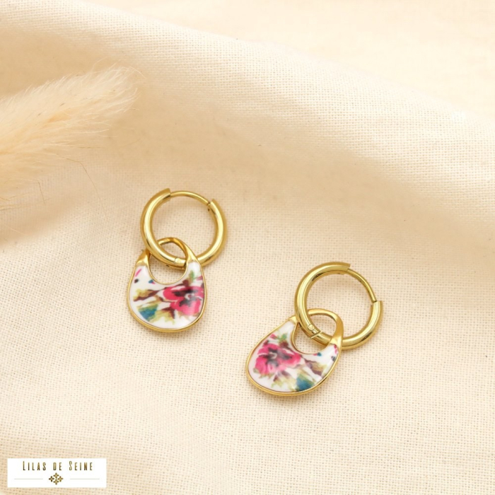 Ces mini créoles se portent aussi bien seules pour une allure discrète et raffinée qu’associées à d’autres bijoux en acier inoxydable pour créer un effet d’accumulation très actuel. Elles complètent parfaitement un look casual chic, une tenue estivale ou une silhouette plus habillée, en apportant une note florale subtile et colorée.