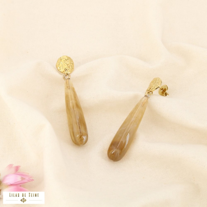 La combinaison de l’acier inoxydable et de la résine offre un bijou à la fois léger, résistant et facile à porter au quotidien. Les nuances subtiles des coloris renforcent l’aspect chic et intemporel de ces boucles d’oreille, idéales pour enrichir une sélection de bijoux féminins en boutique ou en concept-store.