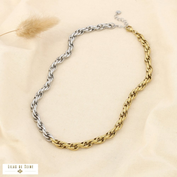 Collier bicolore acier inoxydable chaîne torsadée 0126009