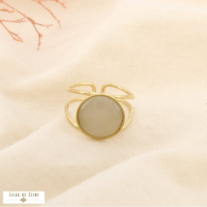 Bague ouverte acier inoxydable cabochon rond verre 0426027 naturel/beige