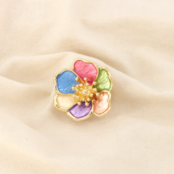 Broche aimantée fleur stylisée métal émaillé 0526042 multi