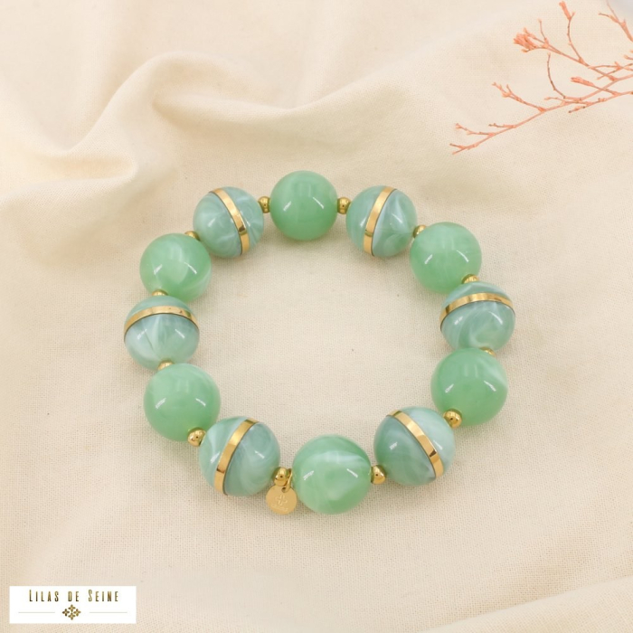 Bracelet boules résine marbrée acier inoxydable 0226124 vert aqua