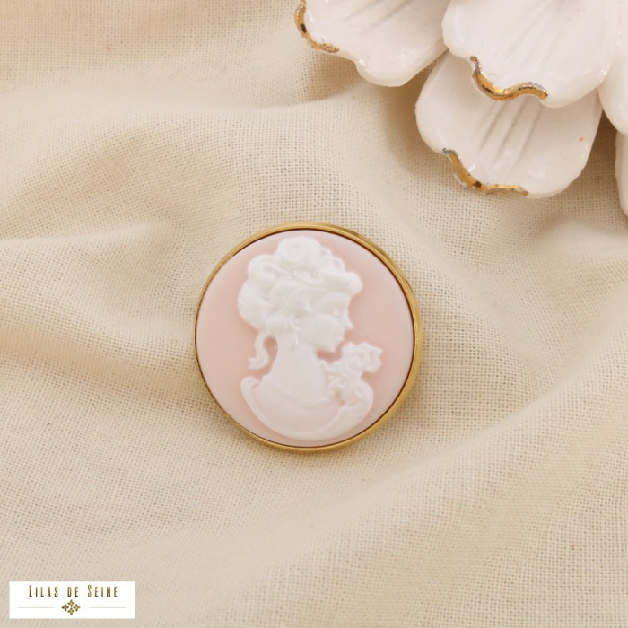 Son design inspiré des bijoux camées traditionnels séduit par son allure romantique et intemporelle, très appréciée dans les univers mode élégants et les collections d’accessoires raffinés.