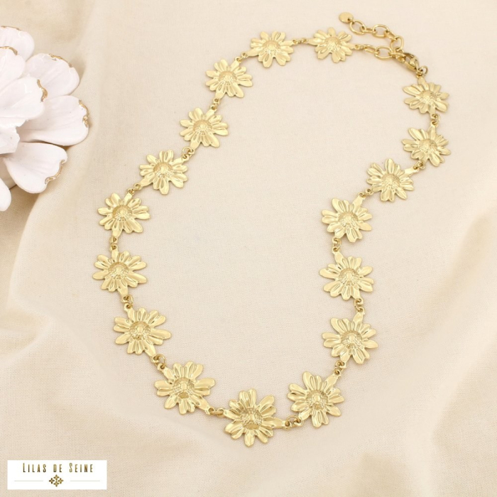 Avec ses marguerites de 20 mm de diamètre, ce collier crée un effet visuel structuré et harmonieux, idéal pour enrichir une sélection de bijoux à forte valeur perçue.