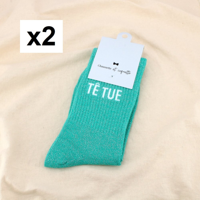Apportez une touche d’audace et de modernité à votre sélection avec ces chaussettes pailletées à message "TÊTUE". Pensées pour une clientèle féminine à la recherche de pièces mode à forte personnalité, elles associent confort textile et impact visuel.