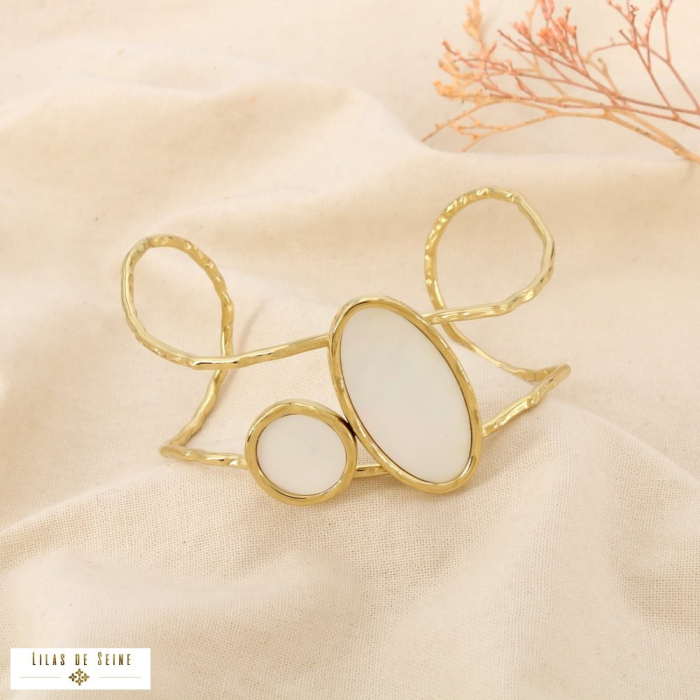 Bracelet manchette acier inoxydable texturé nacre 0226048 blanc