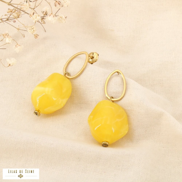 Boucles d’oreilles acier inoxydable résine marbrée 0326121 jaune