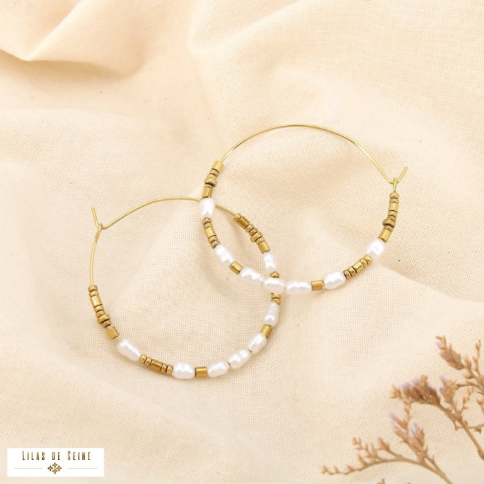 Ces créoles peuvent être portées seules pour sublimer un look épuré ou associées à d’autres bijoux en perles pour une silhouette plus travaillée. Elles s’accordent parfaitement avec des matières naturelles, des tenues fluides ou des ensembles plus structurés pour apporter une touche de douceur et de lumière.